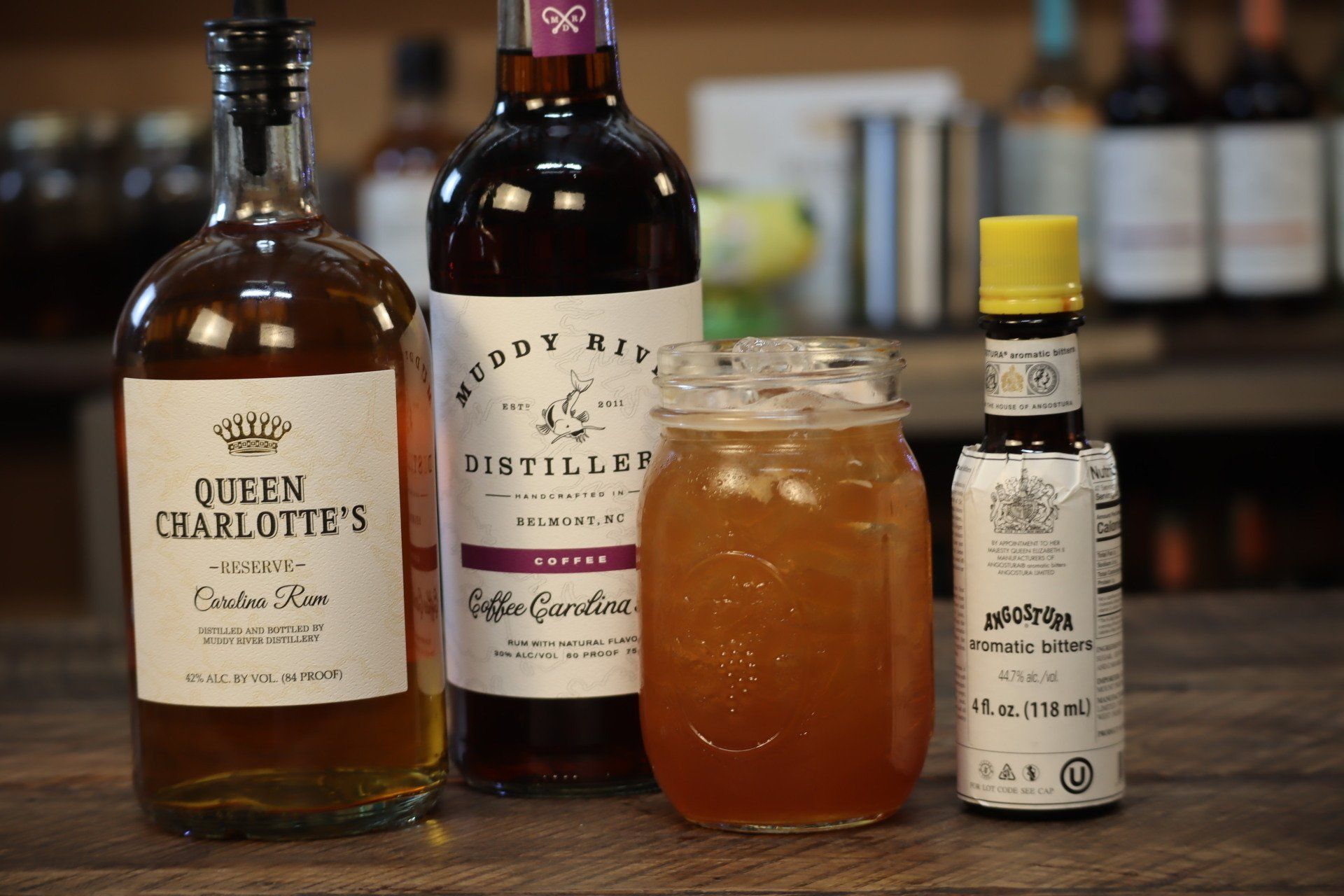 This tiki drink takes advantage of the sweetness from our Muddy River Coffee Rum. Normally it calls for demerara syrup, but we subbed that out for the Coffee Rum. The bitters help show off the coffee flavors and the lime juice adds some tasty tartness. We give some body to the drink with the base of our Queen Charlotte’s Reserve.